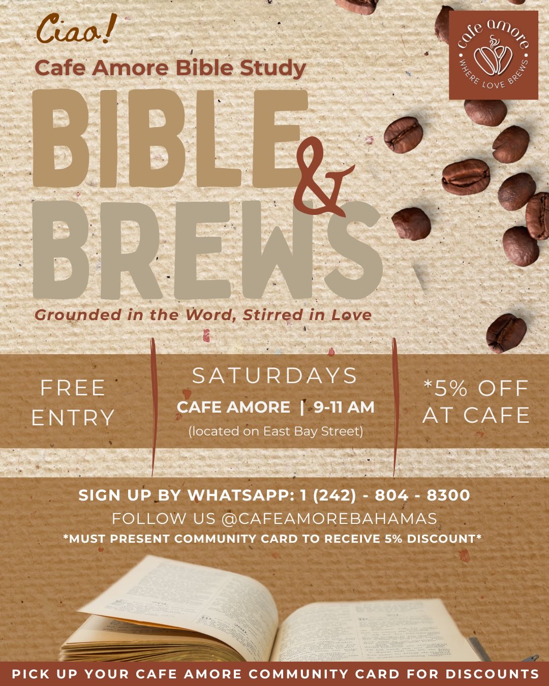 Join Cafe Amore at 9-11am on Saturdays for a morning of Bible study!Date and time is TBDFree